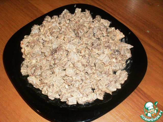 Этот салат хорошо подойдет для мужской компании. Мясной, насыщенно-острый. Но если среди дам есть любители острого, то могут присоединиться. В преддверии праздника 23 февраля, рекомендую обратить внимание на этот салат.
