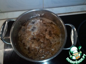 Выложить в кастрюлю, перемешать. На этом этапе можно посолить по вкусу и добавить перец горошком и лавровый лист. Варить еще 30 минут.