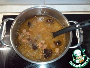 Помыть чернослив и добавить к говядине. Можно тушить в зависимости от жесткости мяса еще 30-60 минут.