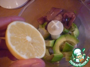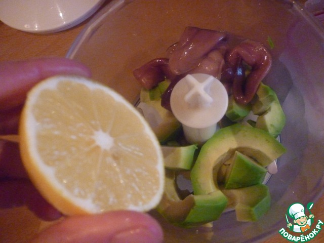 • Авокадо очистить, мякоть нарезать ломтиками и выложить в чашу блендера (я добавила ещё молоки сельди).