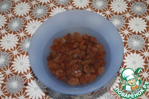 Изюм замочить в теплой воде. Воду слить, изюм обсушить.