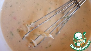 Яица взбиваем с майонезом, сыром, паприкой (мелко нрезанной), мукой. Соль по вкусу. (Я соль не кладу, т. к. сыр довольно солёный.)