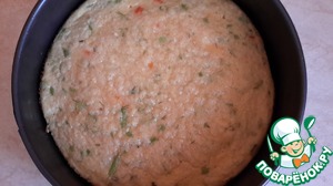 Выливаем в форму, приблизительно, половину яичной смеси. Ставим в, разогретую до 180 градусов духовку минут на 15, чтобы яйцо "схватилось".