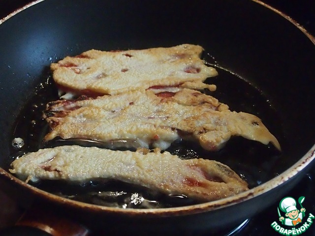В этот момент вы поймете, нужно ли вам в кляр добавить муки или молока, тесто должно быть сравнительно густое, на перцы его будут лепиться много, нужно удалять излишки, проехав по перцам пальцами сверху вниз. По ходу дела все станет ясно. Это самая тяжелая часть работы, но после первой сковородки вы приноровитесь и все пойдет, как по маслу.