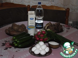 Ингредиенты для «Окрошка на кефире и минеральной воде»: