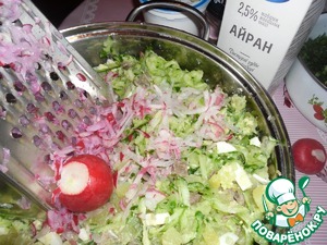По желанию можно добавить тёртый на крупной тёрке редис. Но можно обойтись и без него.