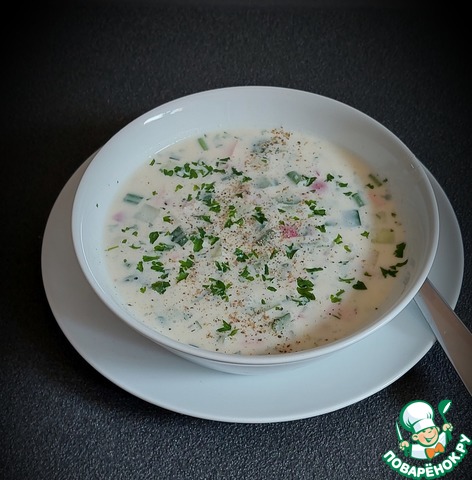 Рецепт «Окрошка на кефире и минеральной воде»: