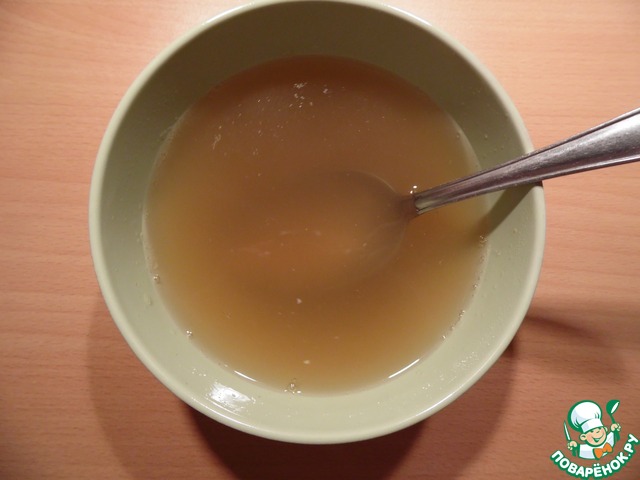 Подсоленный бульон нагреть, развести в нем желатин, остудить.