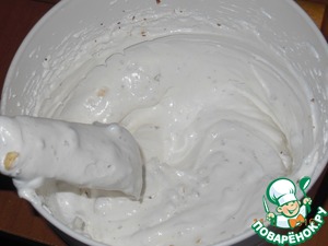 Измельчить не слишком мелко орехи. Осторожно смешать белки с орехами.