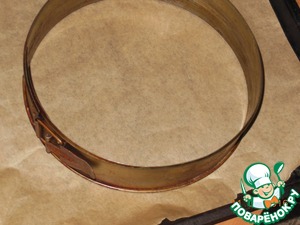 Выстелить пекарской бумагой противень, положить борт разъемной формы без дна на бумагу.