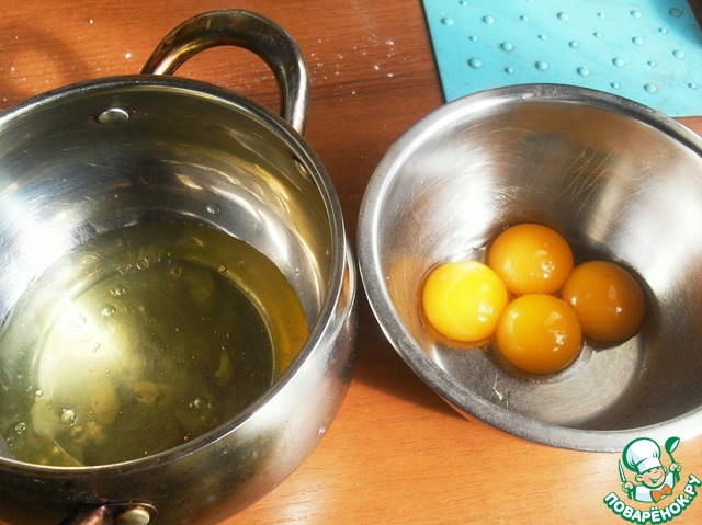• Соединить взбитые желтки с сахаром и муку с маргарином. Замесить тесто. Убрать в холодильник на 30 минут.