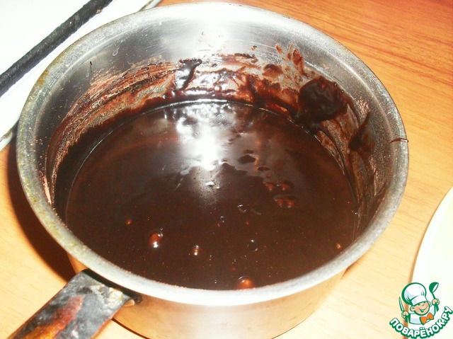 • Глазурь готовим, как обычно. Смешиваем сахар с какао, добавляем сметану, доводим до кипения. Кладем масло. Перемешиваем до однородности.