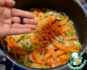 Затем добавить и обжарить паприку, положить ягоды можжевельника. Словами не передать, какие витают ароматы по кухне!!!