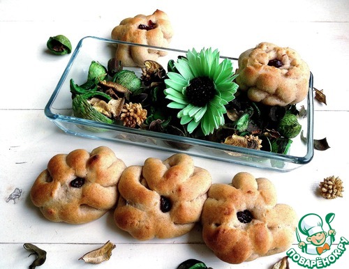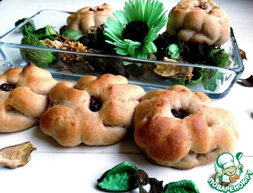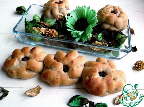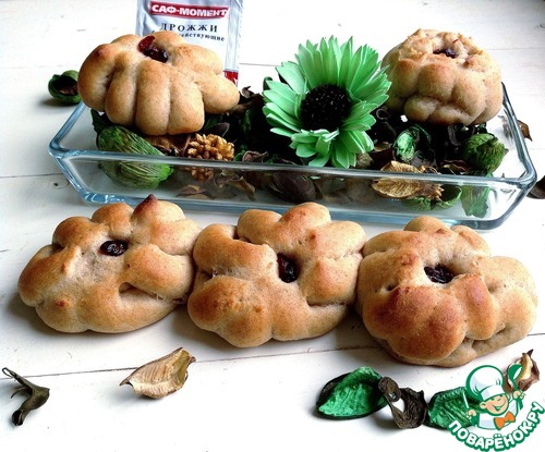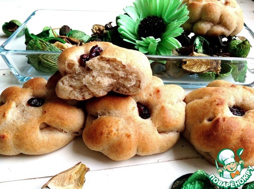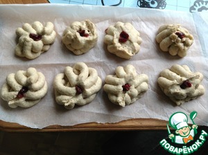 В серединку булочки выложить клюкву ( можно изюм, джем и др). Дать булочкам постоять минут 10 и отправить в духовку при 180 гр до готовности. Верх булочек ничем не смазывала.