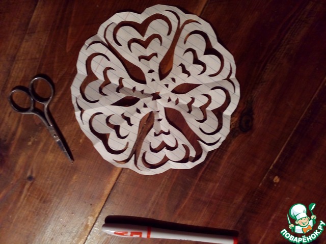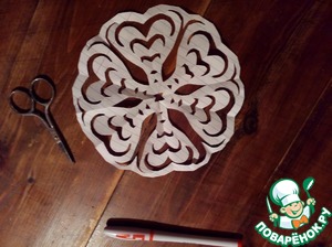 Вынимаем наш кекс, даем ему полностью остыть. Тем временем из обычной бумаги вырезаем любой трафарет. Я, например, вырезала снежинку.