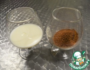 ~ Желатин замочен в 40 мл воды на 30 минут. К моменту соединения прогрет на огне до полного растворения.