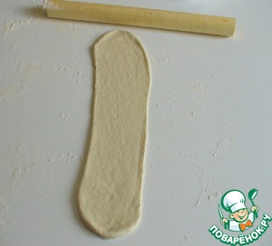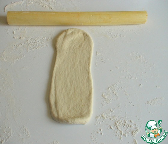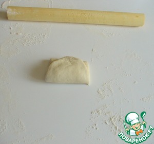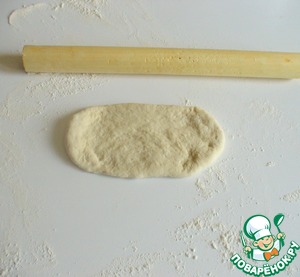 Посыпать стол мукой, раскатать шарик в лепешку.