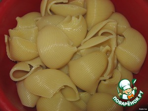 Рожки отварить в подсоленной воде так, чтоб внутри они были слегка твердыми. Воду слить, рожки немного охладить.