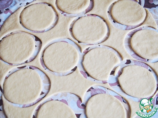 Тесто раскатать и выдавить круги, например, с помощью кружки.