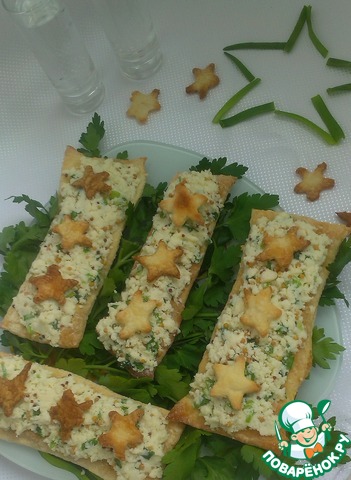Решила в честь праздника 23 февраля сделать, что-то праздничное, тематическое и конечно же вкусное. Вот такая несложная закуска-погоны, с легкостью сможет украсить ваш стол. Вариант намазки увидела у эксперта белорусской кухни Елены Микульчик.