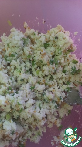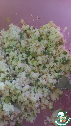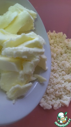 Сыр крошим руками и добавляем масло комнатной температуры.
