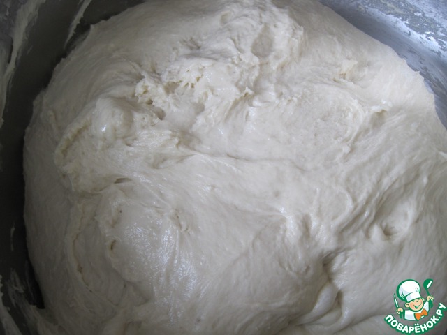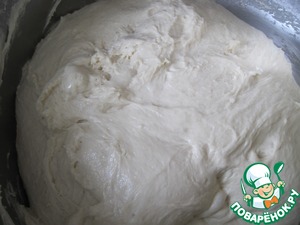 Добавляем муку и замешиваем тесто, оставляем на 1-1,5 часа.