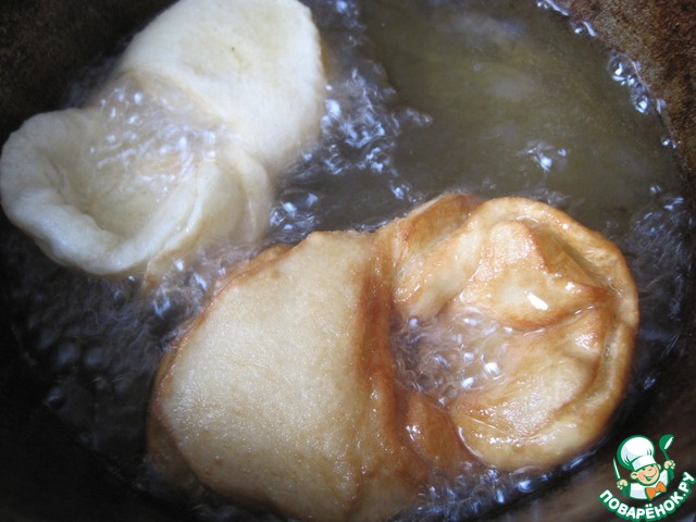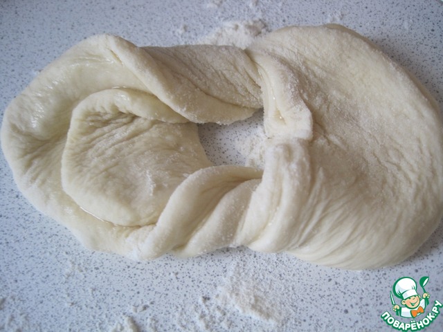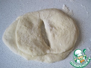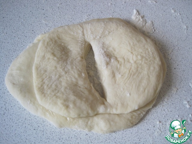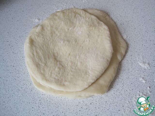 Булочку собираем из 3 раскатанных лепешек (не обязательно одного размера), смазанных между собой растительным маслом.
