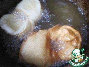 Эти пончики относятся к жареной выпечке, которую я очень люблю, но к сожалению не часто можем себе позволить. Пончики жареные, слоеные, мягкие и ароматные.
