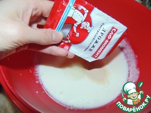 Кефир чуть-чуть подогреть, добавить соль, сахар и дрожжи Саф-момент. Перемешать.