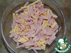 Пока тесто подходит, быстро приготовить начинку. Ветчину нарезать соломкой.