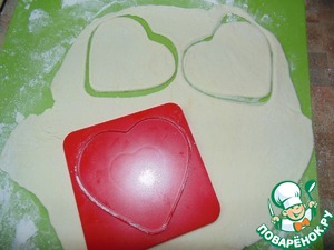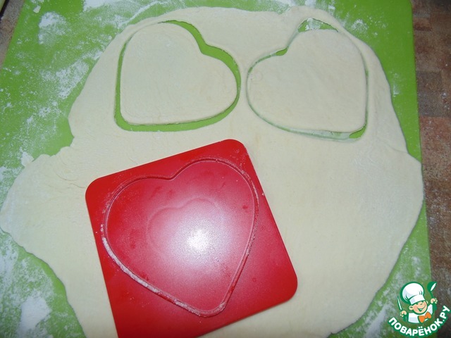 Готовые сердечки выложить на противень, застеленный бумагой для выпечки.