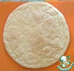 3) Делим тесто на 2 части. Раскатываем каждую в круг около 1 см в высоту и отправляем в духовку на 180 градусов на 15-20 минут. Не держите дольше! Корж по мере остывания станет более твердым, чем когда вы только закончите печь. Грубо говоря, у нас получается большая печенька.