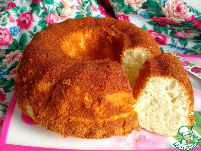 Форму с трубой смазать маслом и присыпать слегка мукой. Аккуратно вылить тесто.