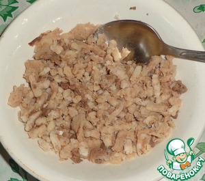 Отварную печень пропустить через мясорубку.