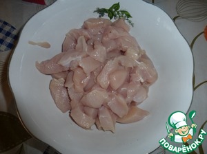 Нарезаем курицу кубиками (или чем-то похожим на них)