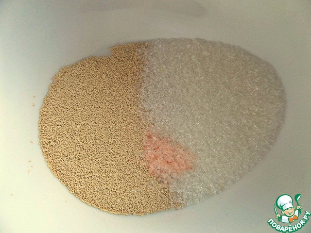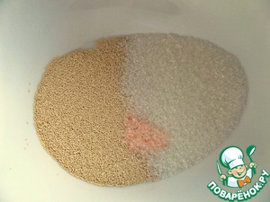 Смешать дрожжи, сахар и соль (у меня гималайская).