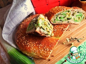 Посвящаю пирог мужской половине Вашей семьи, поздравляю их с праздником 23 февраля! У меня трое мужчин, да и сама люблю несладкую выпечку больше сладкой, поэтому всем угодила)))