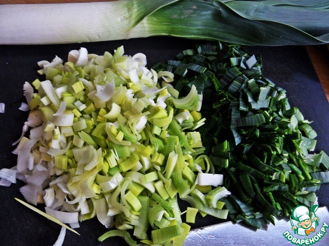 Потом поперёк, чтобы получились кусочки примерно как у зелёного лука.