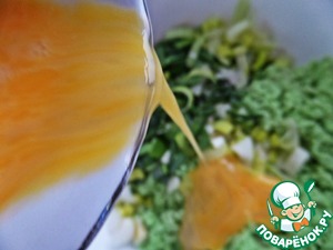 Смешиваем начинку с яйцом. Пробуем на соль.