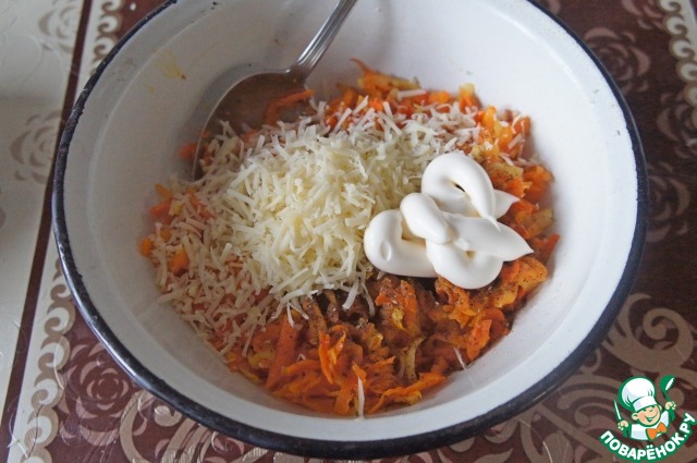 Добавить немного сыра и чуть-чуть майонеза или сметаны - для связки. -
