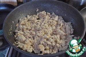 Добавить фарш и быстро обжарить, без фанатизма, так, чтобы не пересушить.