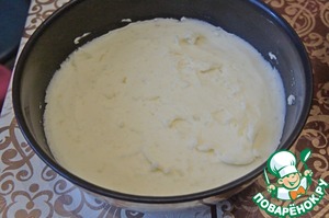 Форму для запекания смазать жиром, выложить картофель и разровнять.