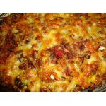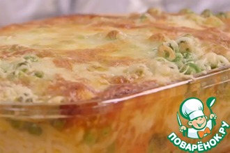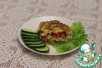 Вынуть форму из духовки, дать запеканке немного остыть, чтобы она окрепла. Затем нарезать на порции и подать к столу. Муж у меня не любит поливать запеканки соусом, поэтому я его не готовила, но не помешало бы. Свою порцию я слегка полила кисло-сладким соусом. Приятного аппетита!!!