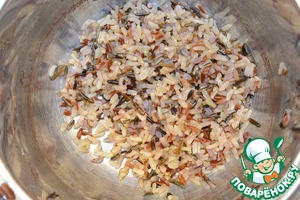 Отварить рис в подсоленной воде. Слить хорошенько воду.