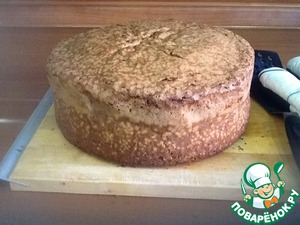 Приступаем к сборке торта. Корж разрежем на 3 равные части.