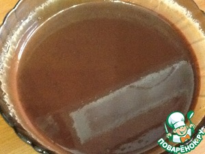 Приготовить сироп для промочки. Нагреть 100 мл воды и 100 гр сахара, как закипит, снять с огня. При желании можно добавить 50 мл киршвассера или рома, или другого алкоголя, а можно обойтись и без него. Сразу предупреждаю: корж действительно нуждается в промочке, он достаточно плотный.