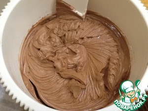Затем аккуратно, в три захода, вмешиваем (я это делала лопаточкой, снизу вверх) муку, смешанную с какао.