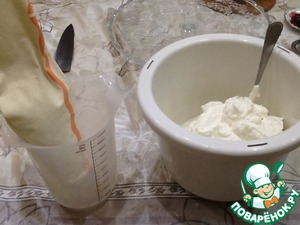 Часть крема убираем в кондитерский мешок, часть оставляем в чаше. -