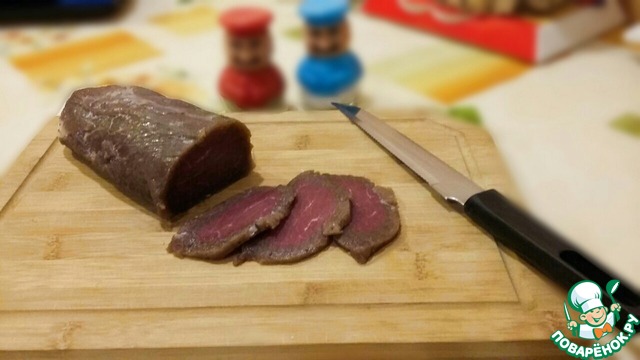 Скажу честно, для меня стало удивительным открытием приготовление мяса таким способом. И, если бы не мой "авантюризм ", то возможно не стала пробовать такое мясо. И еще хотелось удивить мужа на 23 февраля, сделать ему сюрприз. И таки сюрприз удался! Слова мужа: "Вкуснее говядины я еще не ел!". Исключительная закуска! Теперь она надолго закрепится среди любимых.