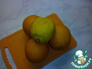 В это время займемся начинкой. Я сняла цедру с такого количества фруктов, т. к. больше не было, но с этого получилось всего пару столовых ложек цедры! Однако, на мой взгляд, вкус от этого не пострадал. Можно взять уже готовую цедру.
